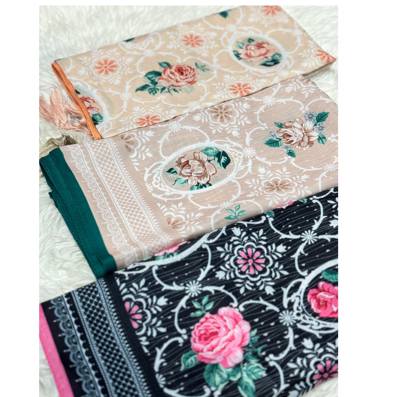روسری کرپ نخ طرح وسط ساده حاشیه گلریز
