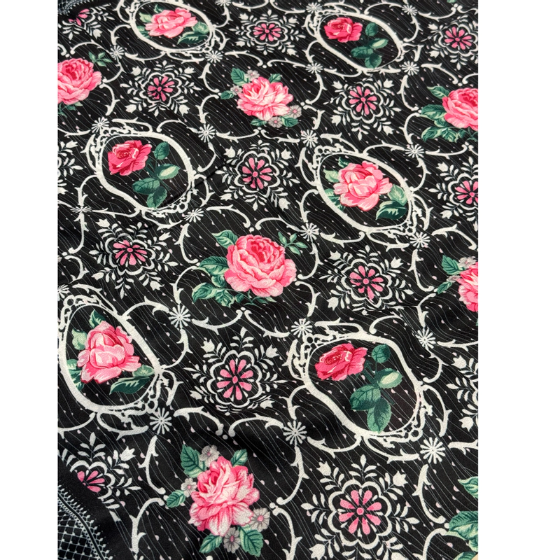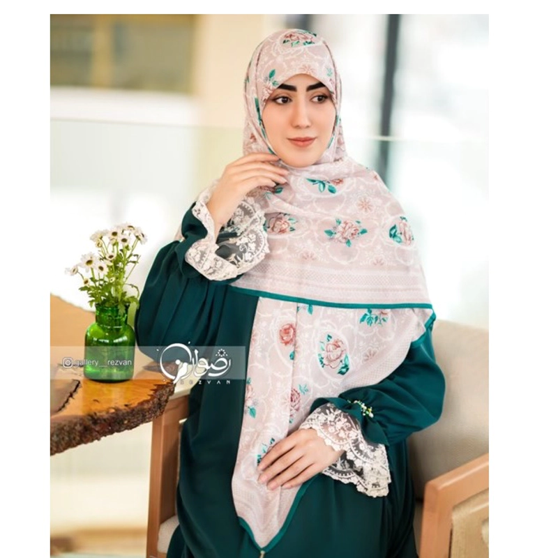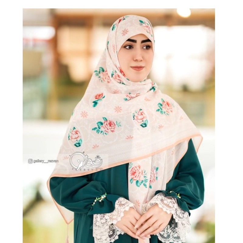روسری کرپ نخ باایستایی عالی طرح پاپیون و گل
