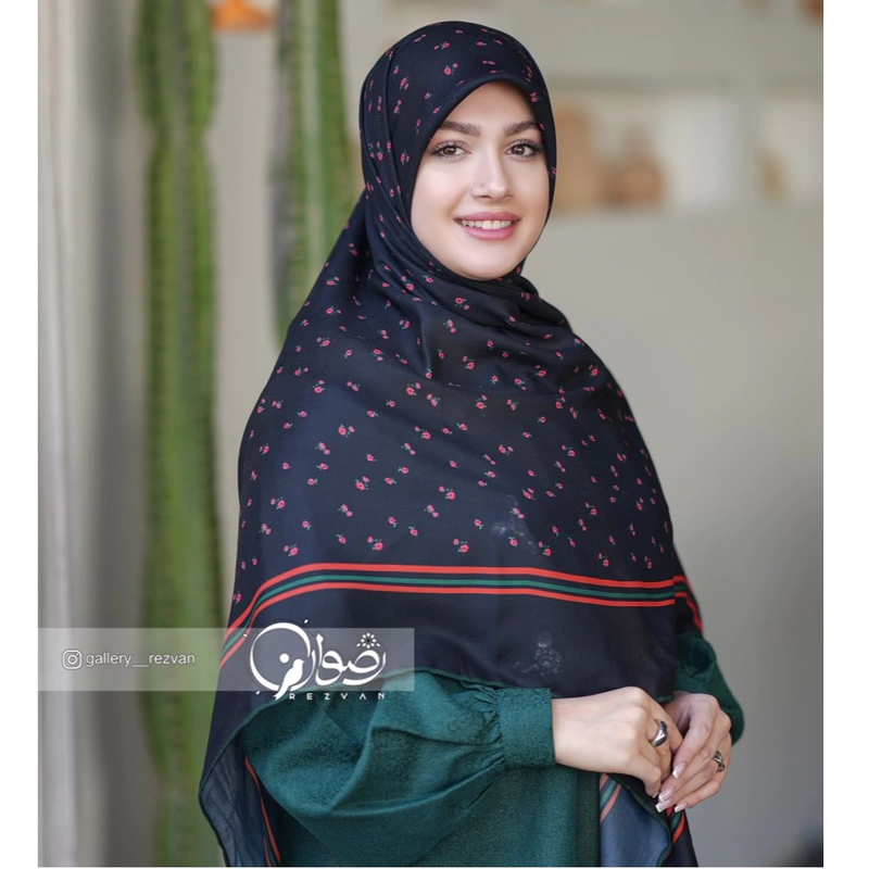 روسری کرپ نخ باایستایی عالی طرح پاپیون و گل