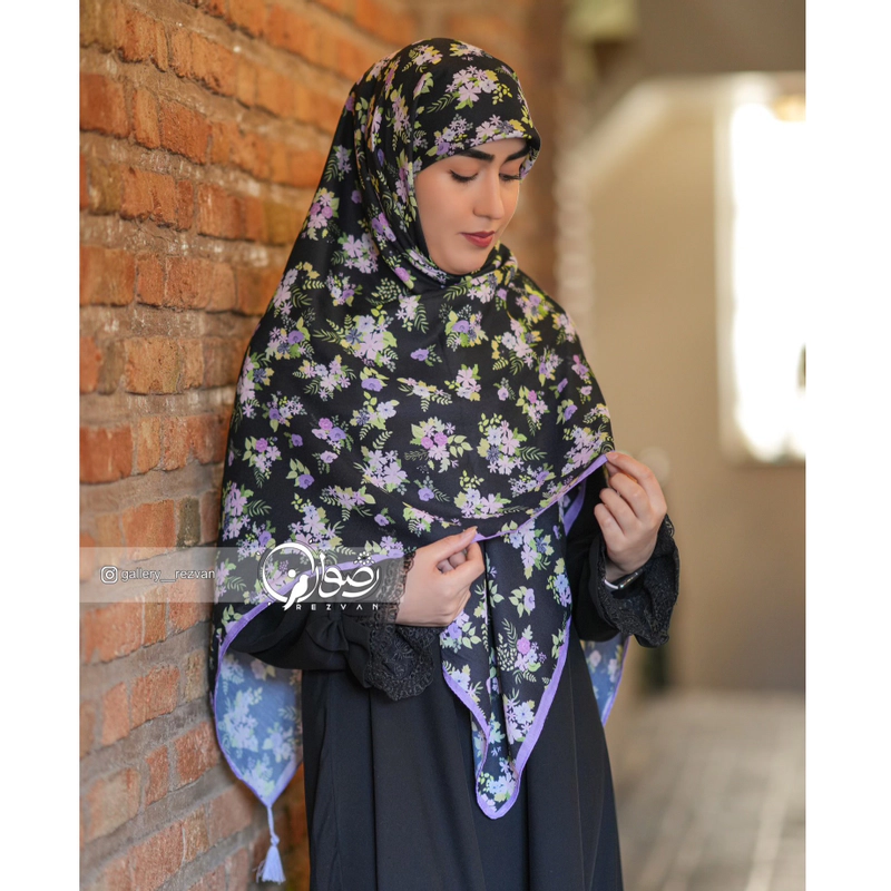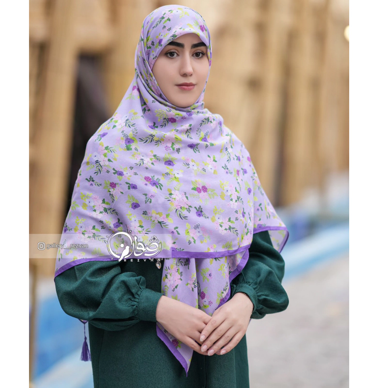 روسری کرپ نخ باایستایی عالی طرح پاپیون و گل